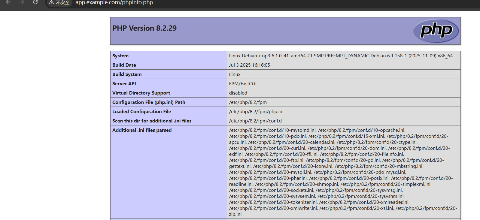 本文内容基于基础的 Debian12 的镜像完成 Nginx+PHP+MySQL 的配置,各组件版本如下表