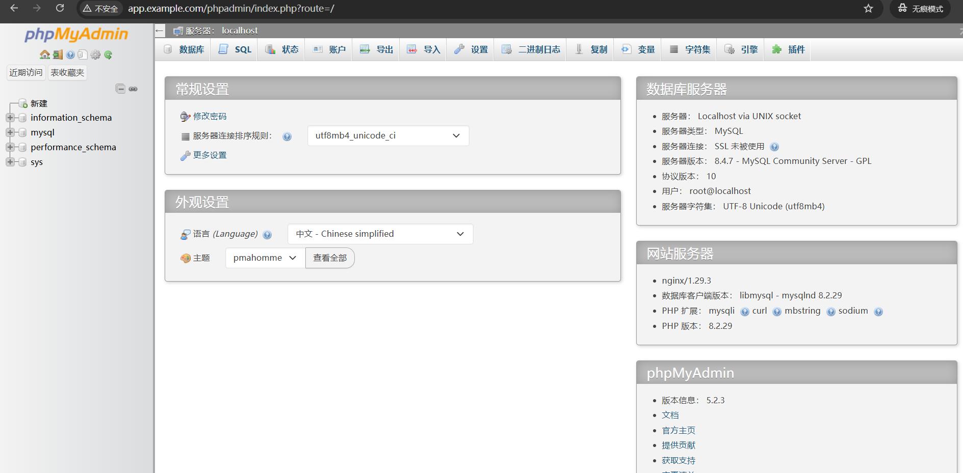 先下载对应的版本,当前最新版本是 https://files.phpmyadmin.net/phpMyAdmin/5.2.3/phpMyAdmin-5.2.3-all-languages.tar.gz